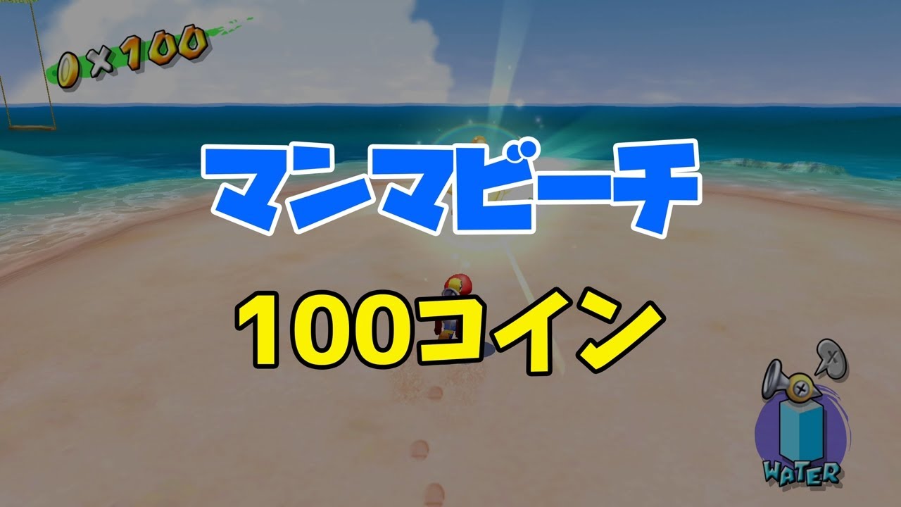 『スーパーマリオサンシャイン』のマンマビーチ「100コイン」の攻略です。(字幕解説+プレイ動画)