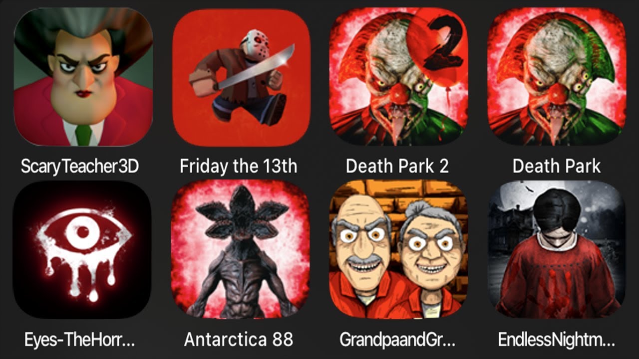 Scary Teacher 3D,Friday The 13th,Death Park 2,Death Park,Eyes The Horror Game,Antarctica 88,Grandpa And Granny 3 Hospital,Endless Nightmare Escape