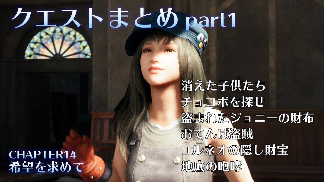 【ファイナルファンタジー7 リメイク/FINAL FANTASY VII REMAKE】のチャプター14 ”希望を求めて”のクエストまとめです。参考程度に…