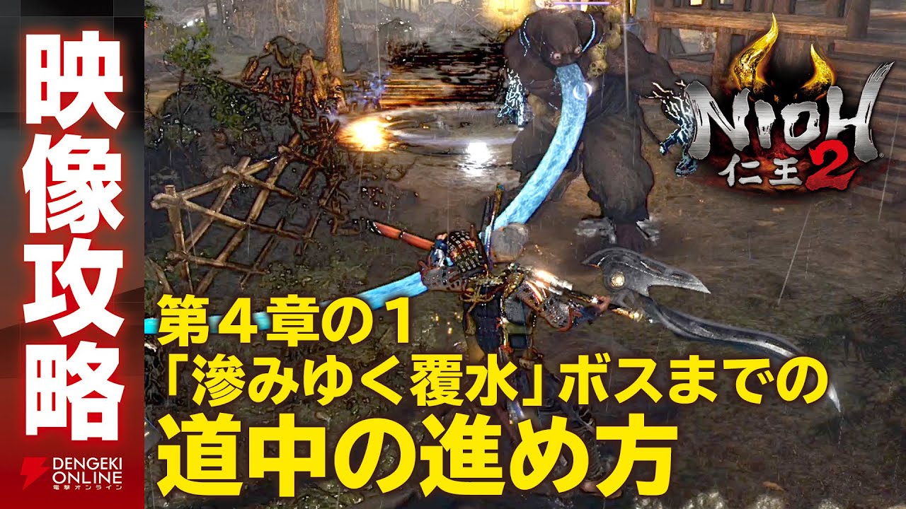 PS4ソフト『仁王2』の攻略動画です。第4章「旭光篇」の1つ目のメインミッション「滲みゆく覆水」のボスに至る道中の攻略動画になります。