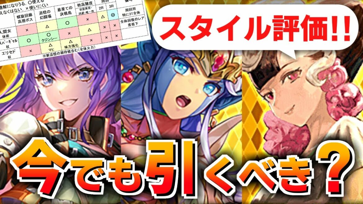 高難易度観点や周回観点で細かくスタイル評価してみました。評価対象は、にんげんおんな、エスパーギャル、エリセドです。