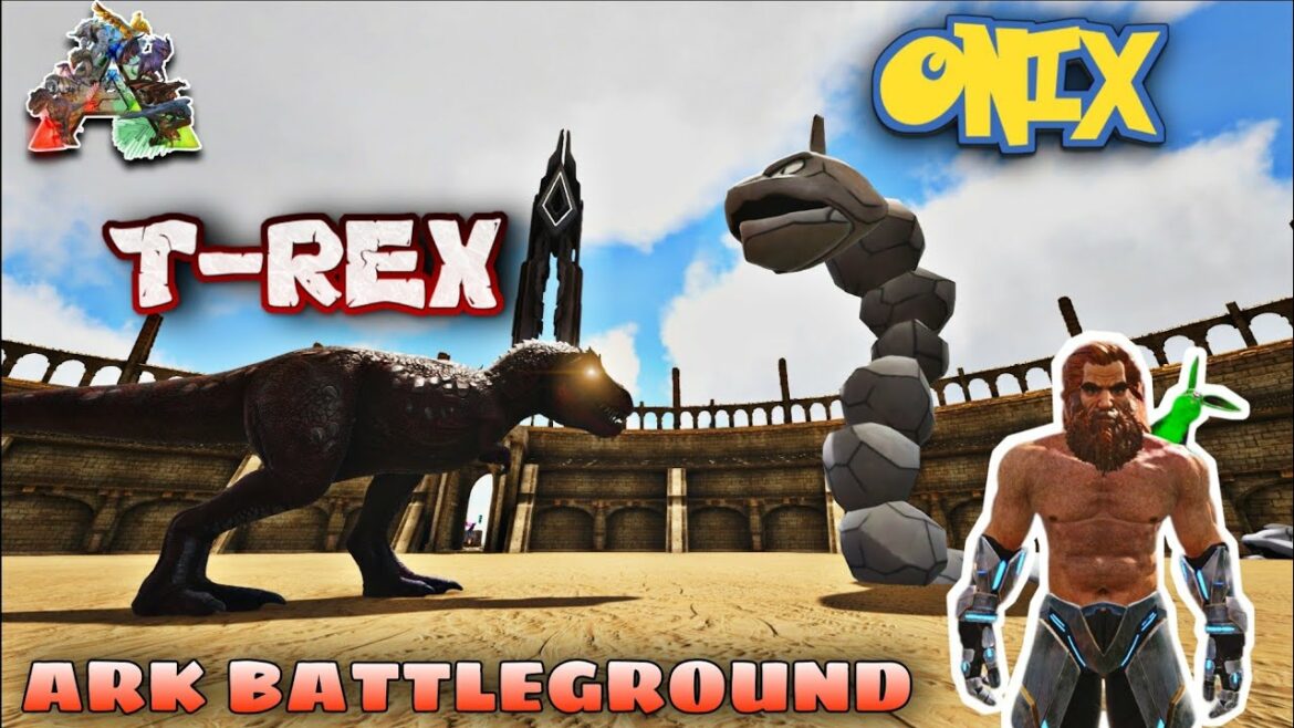 T REX VS ONIX | POKEMONS VS ARK DINOSAUR’S ! | ARK SURVIVAL EVOLVED BATTLEGROUND