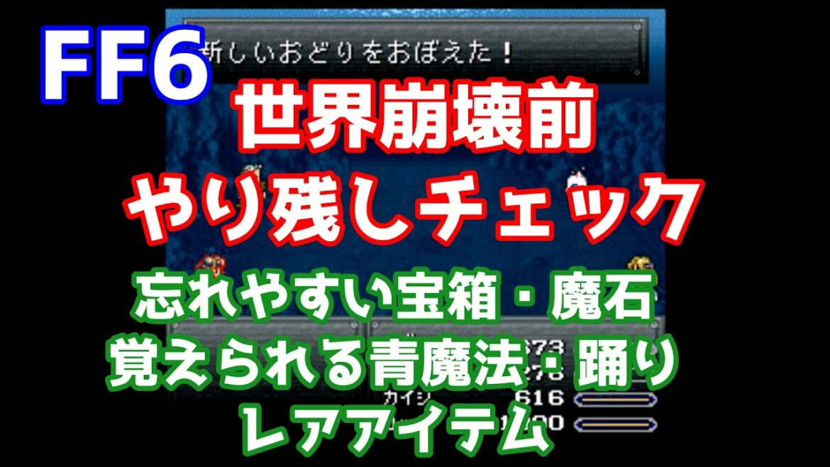 ファイナルファンタジー6で世界崩壊前に出来る事をまとめてみました。