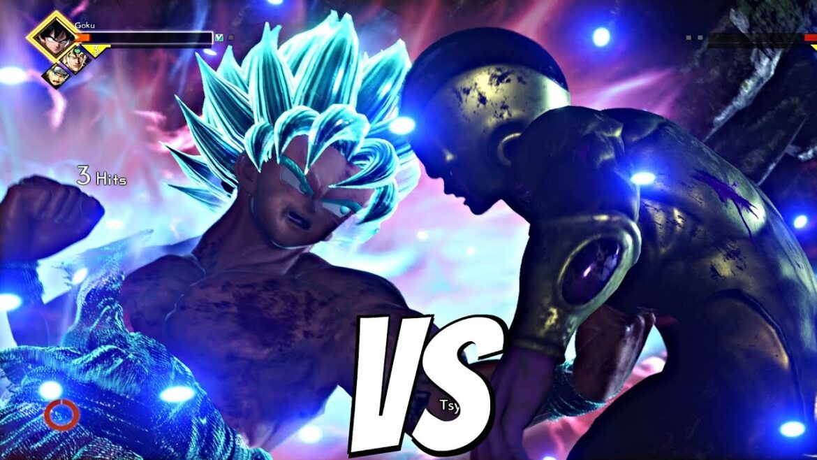 Jump Force Goku Super Saiyan Blue Kaioken / SSGSS Kaioken versus Golden Freeza and all supers + Ultimates 1vs1 gameplay