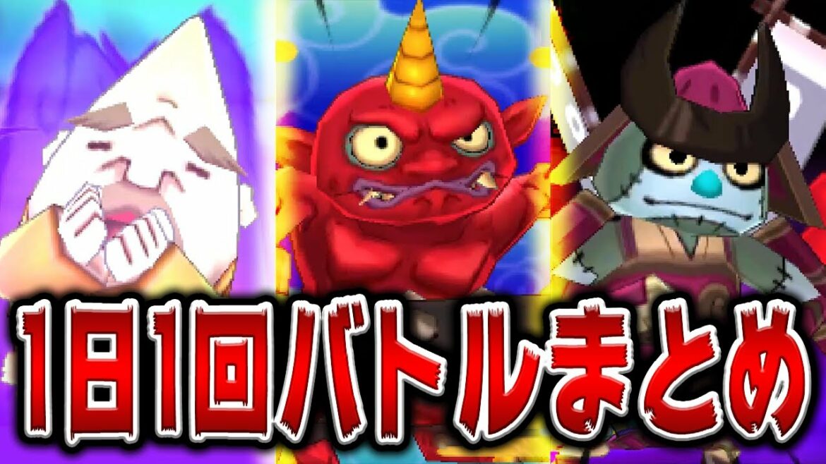 今回の動画では、黄泉ゲンスイ、こめ爺、死神鳥、宝石ニャン、ジェットニャン、ダークニャン、鬼食い、フルーツニャン、ロボ系妖怪、赤鬼などの1日1回バトルできる妖怪をまとめています。