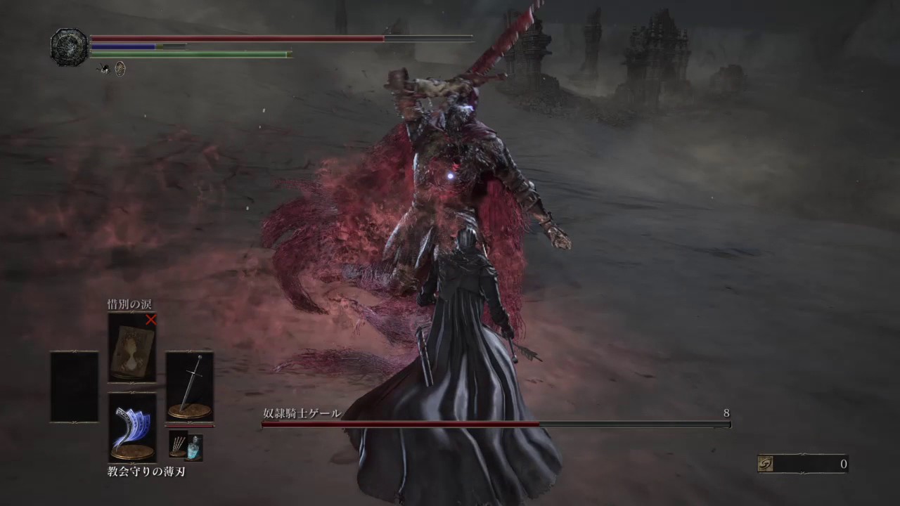 それと、ゲールの通常の怯みモーションも複数ありますが、第二形態以降は怯ませる時に腕を攻撃すると頭が下がるので、