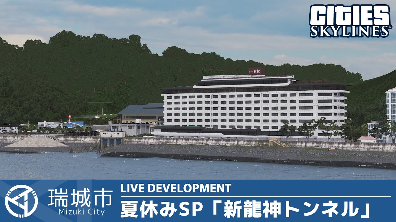 今回は瑞城市中心部と琴浜地区を新しいトンネル「新龍神トンネル」で結び、さらにその先の琴浜地区を開発していきます。Cities: Skylinesデフォルトのトンネル機能を使わないトンネルの制作手法に注目ください。