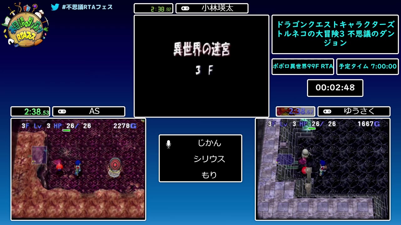 2021/2/12~2021/2/14の間で行われた『第2回不思議のダンジョンRTAフェス』の「ドラゴンクエストキャラクターズ トルネコの大冒険3 不思議のダンジョン」の「ポポロ異世界99F RTA」です。
