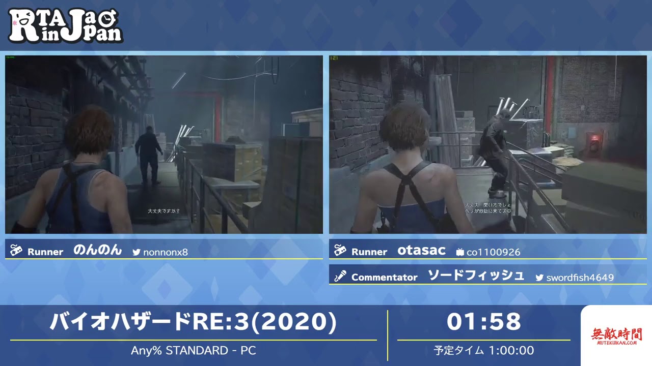 2020/08/13~2020/08/16の間で行われた『RTA in Japan Online 2020』のバイオハザードRE:3(2020)のRTAです。