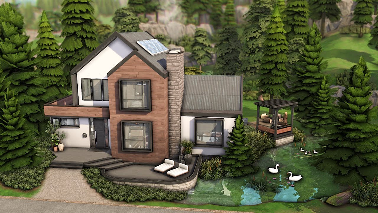 This is a 2 bedroom 2 and 1/2 bathroom contemporary home built on The Summer Home lot (40×30) in Windenburg. I built this for a bachelor and a roommate and has many activities for your sims to enjoy. This home includes a few items from #CottageLiving as well as using the new pond tool.