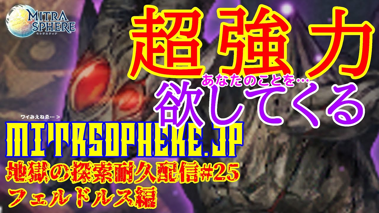 ミトラスフィアというスマホゲームで新探索実装初日に野良で自力登頂(最終Lv.70)をやる耐久配信です。過去の経験上、約5~7時間かかります
