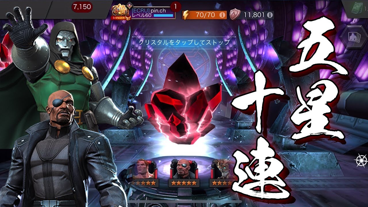 この5星クリスタル10連で、ドゥームかニック・フューリーを引く!!間違いなく引く!!