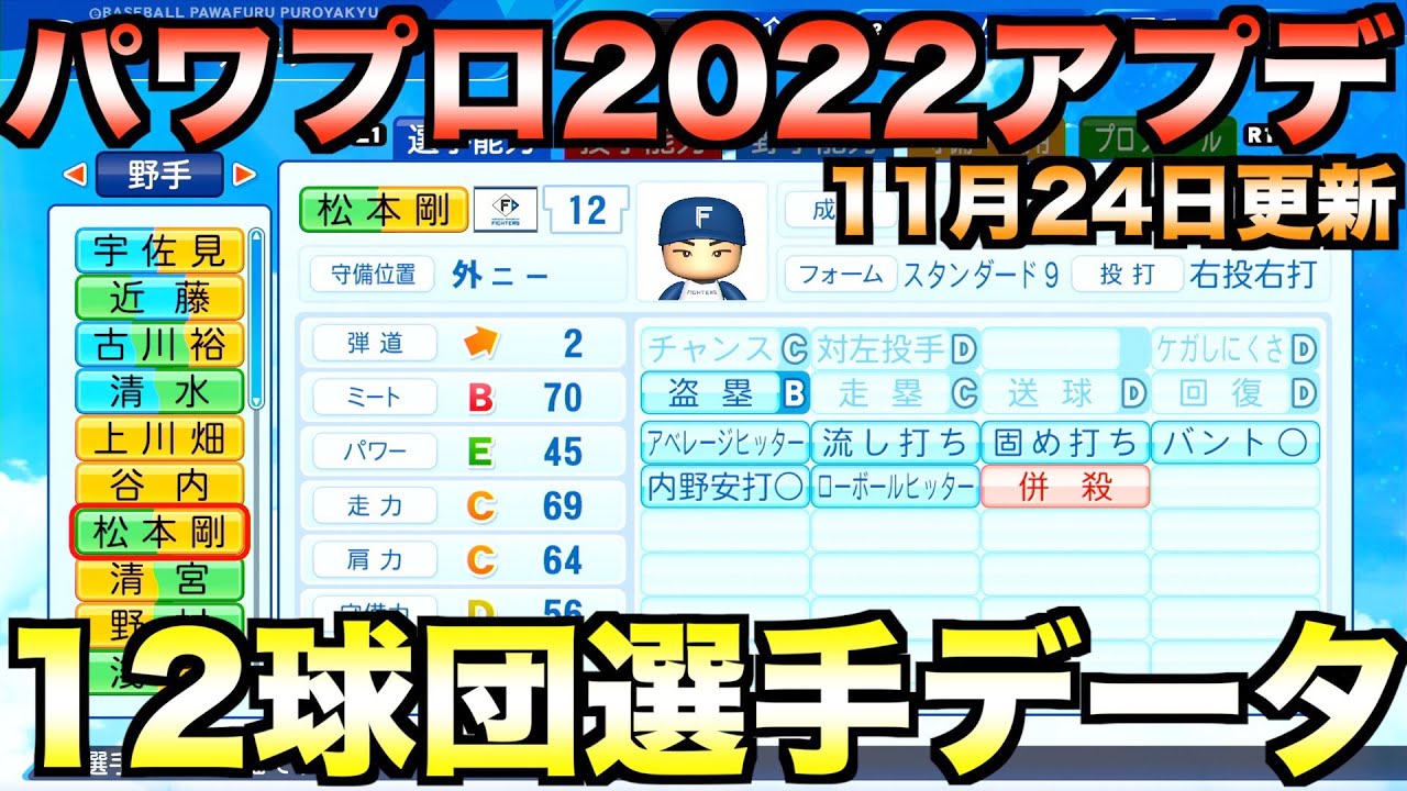 【11月24日アプデ】12球団全選手能力データVer.1.11.0【プロ野球スピリッツ2022】