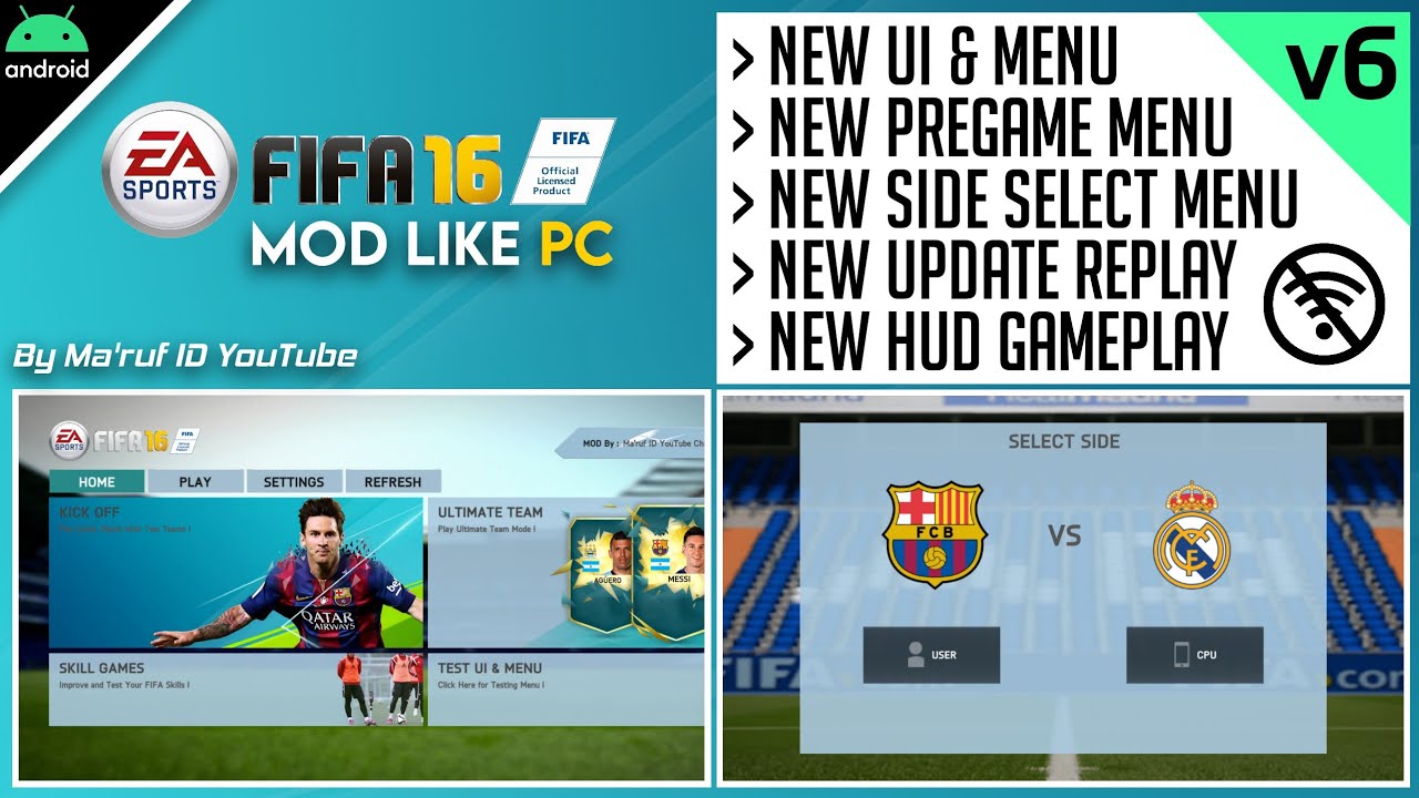 ‼️ Dilarang Bertanya Password File Data FIFA 16 di Kolom Komentar !!! ‼️ Do Not Ask For The Password Of Data Files FIFA 16 in the Comments !!! ▬▬▬▬▬▬▬▬▬▬▬▬▬▬▬▬▬ ➤ MOD Feature v6 : – New Splash Screen – New Update UI & Main Menu – New Select Team Menu – New Select Kits Menu – New Side Select Menu – New Update PreMatch Menu – New Settings Layout – New Squad/Formations Menu – New Pause Menu – New PostMatch Menu – FIX Intro Match – All New Gameplay HUD (Mirip di PC 😅) – Added EA Sports HD LIVE Logo – Added Full Settings for Crowds – Added Fog (Efek Kabut) – New Camera – New Update Replay Camera – New Update Offside Camera – New Gameplay (Convert from FIFA 14 PC)