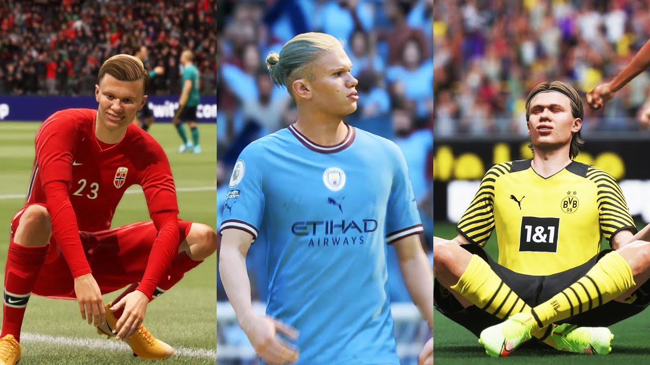 The change in Erling Braut Haaland’s looks, ratings, skills, goals & celebrations from FIFA 17 to FIFA 23.