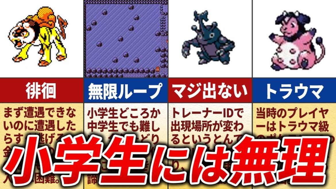 今回は「小学生には難しすぎた要素TOP12【ポケモン金銀】」について解説! ©2023 Pokémon. ©1995-2023 Nintendo/Creatures Inc./GAME FREAK inc. これは「Pokémon Game Sound Library」の利用規約に同意し作成されたコンテンツです。 #ゆっくり解説 #ポケモン #ポケモン歴史 pokemonRPGyukkuriポケットモンスターポケットモンスター 金ポケモンゆっくりゆっくり解説初代 28 Comments Ryo Ultra. 2年 ago ポケモン金銀の苦戦した場面やで!!あまりにも厳しくて、アカネのように泣いてしもうたらアカンで~!! しゅらいむ 2年 ago ポケモンデビューが銀版フラッシュを知らず入ったくらやみのほらあなでレポートをかいてしまったから出るのに数週間かかったな 緑髪青肌 2年 ago マサキ祖父からの要求ポケモン面倒でした…ナゾノクサを緑とか言ってた気がするタマムシデパートの購入はその後初めて知ったけどタイムカプセルがありがたすぎる 素直に時間帯をリアル再現した私が愚かだった。水晶だけどゴマゾウやらレディバのために朝起きして… バルキーは入手自体攻略本無しで鬼畜でした!能力値とかタウリン系の効果しらなかったから入手に何年費やしたか 知らずにアクア号でメタルコートもらった当初の驚きよ一つのみが嫌らしい… 確かに右上からと知らなかったから初めは迷いました…ルートさえわかれば簡単だけど ルイおじじ 2年 ago チコリータはただでさえ相性不利なのに種族値も耐久寄りで技範囲もクソすぎるのが…のしかかり(かいりき)覚えるまでが地獄だし覚えたところでってのが…地震をこいつに覚えさせるの勿体無いけど使い道なくなるよりは…って悩むレベルで弱い 西直伸 2年 ago クヌギダマは、毎回のように捕まえてました! もいもいぶるぺん 2年 ago 先に水晶版をやってから金銀をやったんだけど氷の抜け道なんでこんなに難しいの?って思ったなぁ もりさん 2年 ago レポートバグで石持たせたポケモン増殖させてたわ 黒髭 2年 ago 当時ヘラクロスは簡単にゲットできたけど、実際の確率知ってビックリした。 神宮京平 2年 ago 初代もそうだけどボッチには通信進化は鬼門だったな…。ソフトやゲーム機を複数用意なんてそれこそ親の財布事情で無理ゲーだったし親にも「何で買ってあげたのにまた同じカセットもゲーム機を買わないといけないの!?」って言われたな…。 Mr. SKⅡ 2年 ago 進化の石は初代との通信を促進するために金銀では敢えて入手を厳しくしたと語られてますね。 Mr. SKⅡ 2年 ago アカネのミルタンクはシリーズ初のプレイヤーを負かしにかかってきた相手でしたね。アニメですら一度負ける(しかも全員ミルタンクにやられる)シナリオだったことからも、その恐ろしさが共通認識だとわかります。 カツオハヤカワ 2年 ago 必ずライコウは最後にでがち 実際 スイクンか唯一神の方が先に出る アカネは♀の御三家ワニノコ厳選するしかない その経験からルビー以降なるべく♀パーティーでやる やきう 2年 ago 小学生にはって条件付けるならトップクラスの難易度を誇ったのは発売日が平日だった事 宇佐ヒサユキ 2年 ago なんならゲームボーイは夜だと全然見えないから余計に夜限定要素なんて仕えんやろ あはい 2年 ago クリスタル版してたなあ 一輝(イッキ) 2年 ago ツクシのストライクのれんぞくぎりもなかなかキツかった思い出。ミルタンクより先にこっちに全滅させられてたわ。 銀林檎〆 2年 ago 攻略本持ってたから苦戦した記憶ない もち 2年 ago 佐藤 たかしくんそのポケモンかっこいいね!たかし ヘラクロスのこと?佐藤 うん!!そのポケモンどこでゲットしたの?たかし ここの木で頭突きしたら現れたからゲットしたの!!佐藤 いいな〜教えてくれてありがとう!! 三日後佐藤 たかしくんの嘘つき!!たかし なんで?佐藤 言われた木に頭突きしても全然出ないんがけど!たかし 僕は出たもん!!佐藤 嘘つき!サイテーもういいたかしとは絶交する!たかし なんでよ〜(;_;) MAXマン 2年 ago ジムリーダーのアカネは当時チートだと思うくらい強かった ゾフィーのウルトラチャンネル 2年 ago これ観るとソウルシルバーとほぼ一緒やけどプレイヤーのために優しくされたんやなと思う。 怪談レストラン 2年 ago 始めてやったポケモンが金だから懐かしい 桜花あさひ 2年 ago 俺は友達のほとんどが初代でみんなやめてしまったけど、そういう時に助かるのが兄弟の存在なんだよね😊 通信交換は 優乃 2年 ago 自分はクリスタルだったなぁ ザファントム 2年 ago 当時はイシツブテ育ててたしじっくりレベルあげてから挑むタイプだったからアカネに苦戦した記憶がないな 無口なライダー&Akita 2年 ago クリスタル版でメリープを永遠と探して歩いたな〜(涙) ジェームス伊藤 2年 ago 12:21没収された言ってるけどチコリータは金銀が初出だろ。 ペイしゅう 2年 ago ミルタンクはマグマラシでは瞬殺された Hiusa 2年 ago ずつきの木は小学生の時「ここはポケモン落ちにくいなー」って思った木は避けながら片っ端から頭突いて遊んでたけど、この動画で「あの感覚正しかったのか小学生の頃