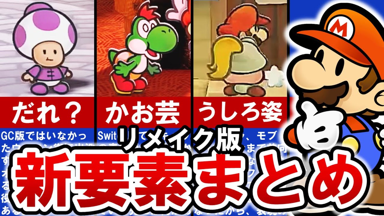 ペーパーマリオRPGのリメイク、うれしすぎますよね!今回はニンテンドーダイレクトに発表されたSwitch版PVからわかった新要素についてまとめました。GC版との違いがこれではっきり分かるかも⁈ ぜひご覧ください!!