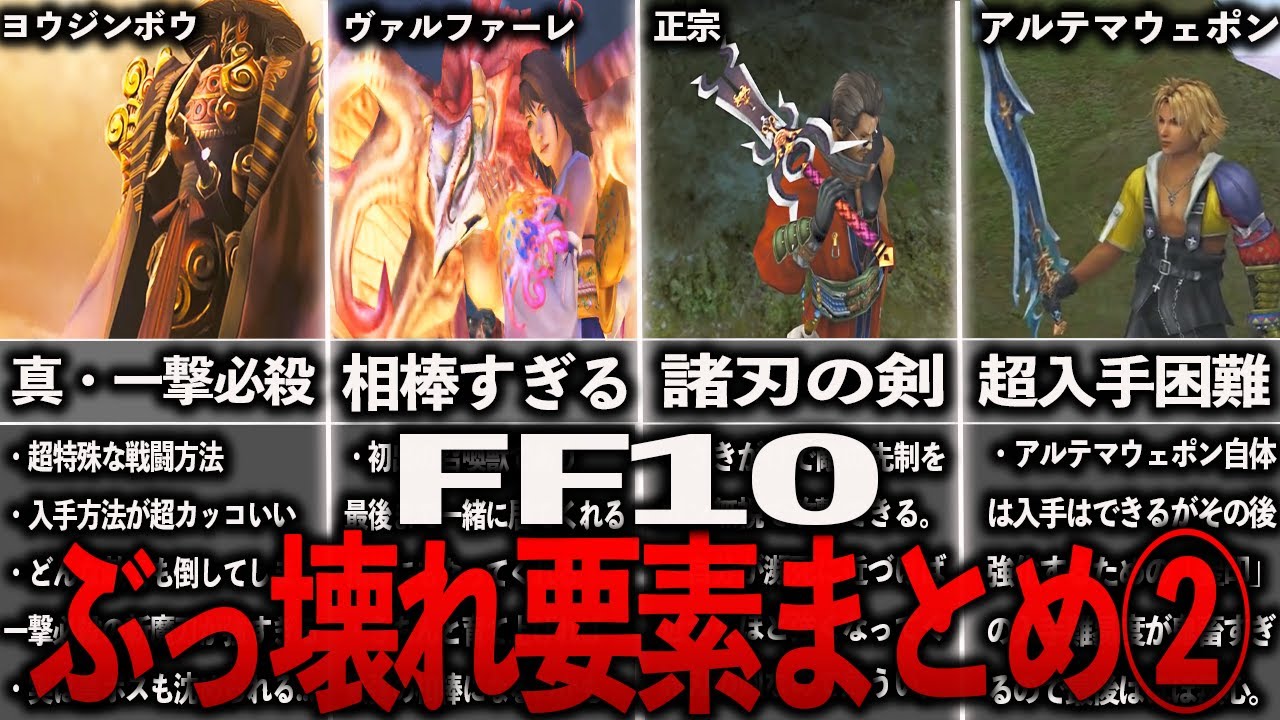 FF10のぶっ壊れ要素をまとめてみました。 ゆっくり解説始めました。 ©1991, 2012 SQUARE ENIX CO., LTD.All Rights Reserved. LOGO & IMAGE ILLUSTRATION:©1991, 2012 YOSHITAKA AMANO FF10ff10 ぶっこわれFF10 ぶっ壊れRPGファイナルファンタジーファイナルファンタジーXぶっこわれぶっ壊れランキング選 16 Comments @user-sh5sk5vz6m 2年 ago 召喚獣って七曜の武器一段階までの強化で限界突破するんじゃなかったっけ? @user-it6vh1xg6d 2年 ago ぶっちゃけ、強化のしやすさとアビリティなら、ワッカが一番だと思うなぁあと、個人的には、武器アビリティで欲しいのはさきがけだから、正宗もそれなりに上かと あと、何故か、ヴァルファーレの順位が7位になっている(解説は8位) @gantank348 2年 ago PS版時代から 七曜武器は隠れ性能の防御無視に武器アビリティのダメージ限界突破、トリプルドライブだけ全部同じで 残りの2マスはプレイヤーの任意にでいいじゃないかと思っていた @tokiyamisaka 2年 ago 0:16 待っててくれた霊夢のためではなく…w? @user-uq7ee7de5y 2年 ago 正宗はオリジナル版が強すぎてインター版以降で動画の説明通りの性能に落とされたみたい。入手が簡単だからって余計な事を… @user-kn8ns2rx6t 2年 ago 一番めんどくさい聖印は雷避けだと思う。200回は心が折れる… @kazukishi4728 2年 ago 番外でいいのでオリジナル版の正宗も入れてほしかった。 @user-ky9or2rs9s 2年 ago 自分で最強武器作った覚えがあるダメージ限界とトリプル付けて後は強そうなアビリティ(MP1かな)で、リュックとキマリが七曜外してたような😂 @NEMON-re2gz 2年 ago ブリッツボールニンテンドーオンラインでネット対戦できるようにしたら皆やると思うんだよね。 @nana777minori 2年 ago 正直ストーリー中盤(シーモア辺りかな?)から訓練所含めて、やり込むならOD強いティーダとワッカ、召喚と特殊が強いユウナとリュック、保険として確実先制のアーロンいれば問題無かった……なので大変だけど実質五人分の専用装備を自分で作る方が良かったんだよねwww @210_futo 2年 ago とれとれチョコボはなんとかなるけど、雷避けだけ無理だったなぁ(´・ω・`) @user-xn6or9hy7y 2年 ago モチベに関わるよな、また10やりたいって思ってもチョコボだりーとか雷だりーやめとこってなる。他はよくてもティーダの最強武器は絶対欲しいし @tkdrdrdr7108 2年 ago FF10と10-2のミニゲームはほぼやりこんだけど、ブリッツボールが意味が分からなくてワッカは全然育てなかったな @user-tq8wh4ci5r 2年 ago リュックのゴッドハンドはオメガ遺跡のミミックギル稼ぎに有能だった @user-sx3yv3ep7m 2年 ago 結局オートヘイストとクイックトリガーがさいつよ @lapisu11 2年 ago マウスポインターが気になって動画に集中出来ません笑 Write A Commentコメントを投稿するにはログインしてください。