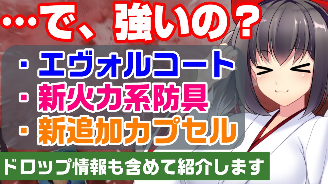 8月18日のアップデートで防衛クエストやエヴォルコート、新しい防具やカプセルが追加されたので、速報気味にさらっと紹介します。実況や詰めた話はまた後ほど。