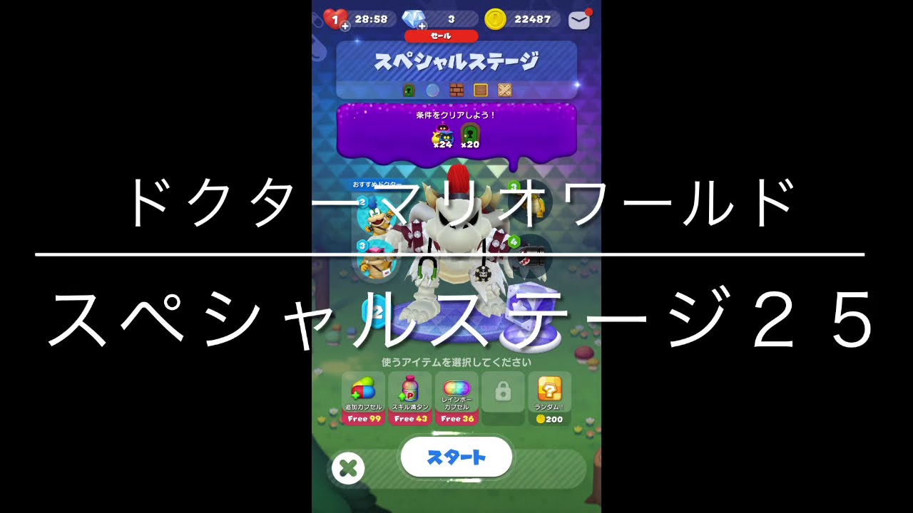 黙々とドクターマリオです^_^ Dr.MARIODr.mario worldfree gamesmariomobile gamesクリアスペシャルステージ25スマホゲームアプリドクターマリオドクターマリオワールドドクマリノーアイテム攻略星3無料のスマホゲームアプリ 3 Comments @narutobakijp2 5年 ago 早いアップですね。シリアルナンバー150以内もすごいです。^^ @narutobakijp2 5年 ago 0:25 ここでは、バブル黄色を4つまとめて消すのが正解なんだろうとおもいましたが、カプセルを複数出せばスクロールする、という発想はありませんでした。すごいです。参考になりました。 @narutobakijp2 5年 ago 本編と話がずれますが、一番最初、追加カプセルが99の表示になってます。これでカンストなのでしょうか?(100以上にはならない) Write A Commentコメントを投稿するにはログインしてください。