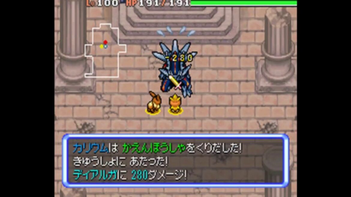 これによって、パートナーが初手でディアルガに突っ込む行動にでます。するとディアルガも初手でこちらに突っ込んでくるので(遠隔技を使ってこない)、2ターン目に攻撃を仕掛けられます。
