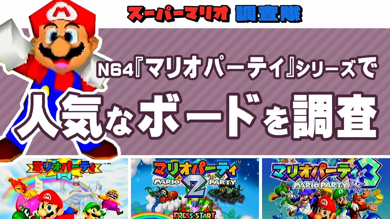 今回は『マリオパーティ スーパースターズ』の発売を記念して、N64『マリオパーティ』3作の人気ボードを調査。