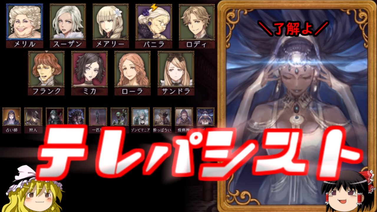 この動画の影響で、ジャッジメント始めました。テレパシストはまだ使ったこと無かったので、参考にさせて貰います。機会あれば、新種の人狼使ってみて下さい。