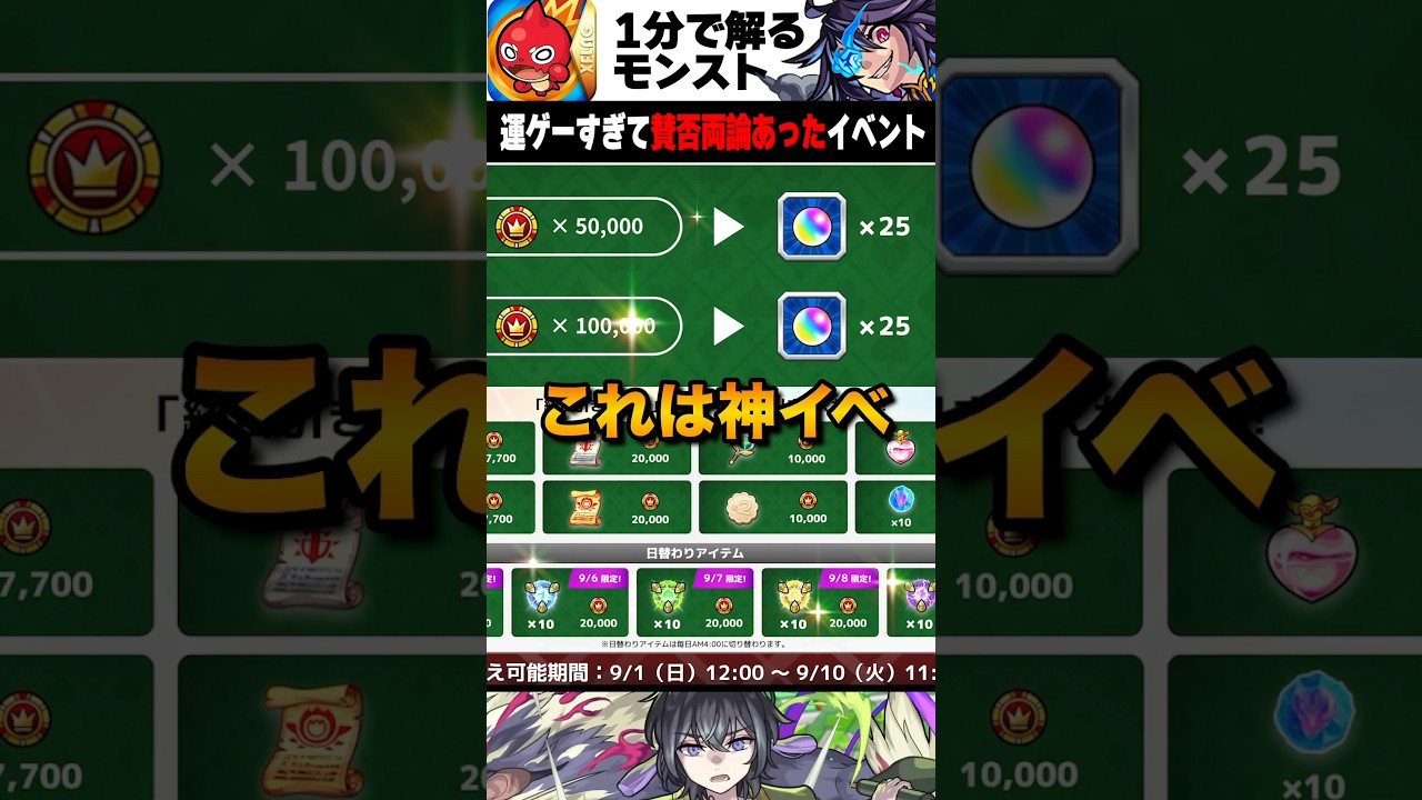 どっちもゲーム性が欠けてると思うんだよね。「モンスト」っていうデカイゲームのミニゲームだしそんな力入れないのかもだけどもっとギャンブルならギャンブルらしく掛け金を10000とかまでできるとか、ダンジョンズドリームはよくわからんけど最後に今まで逃したキャラを1人だけ回収できるようにするとか、次やる時は何かしら新しくして開催してほしい