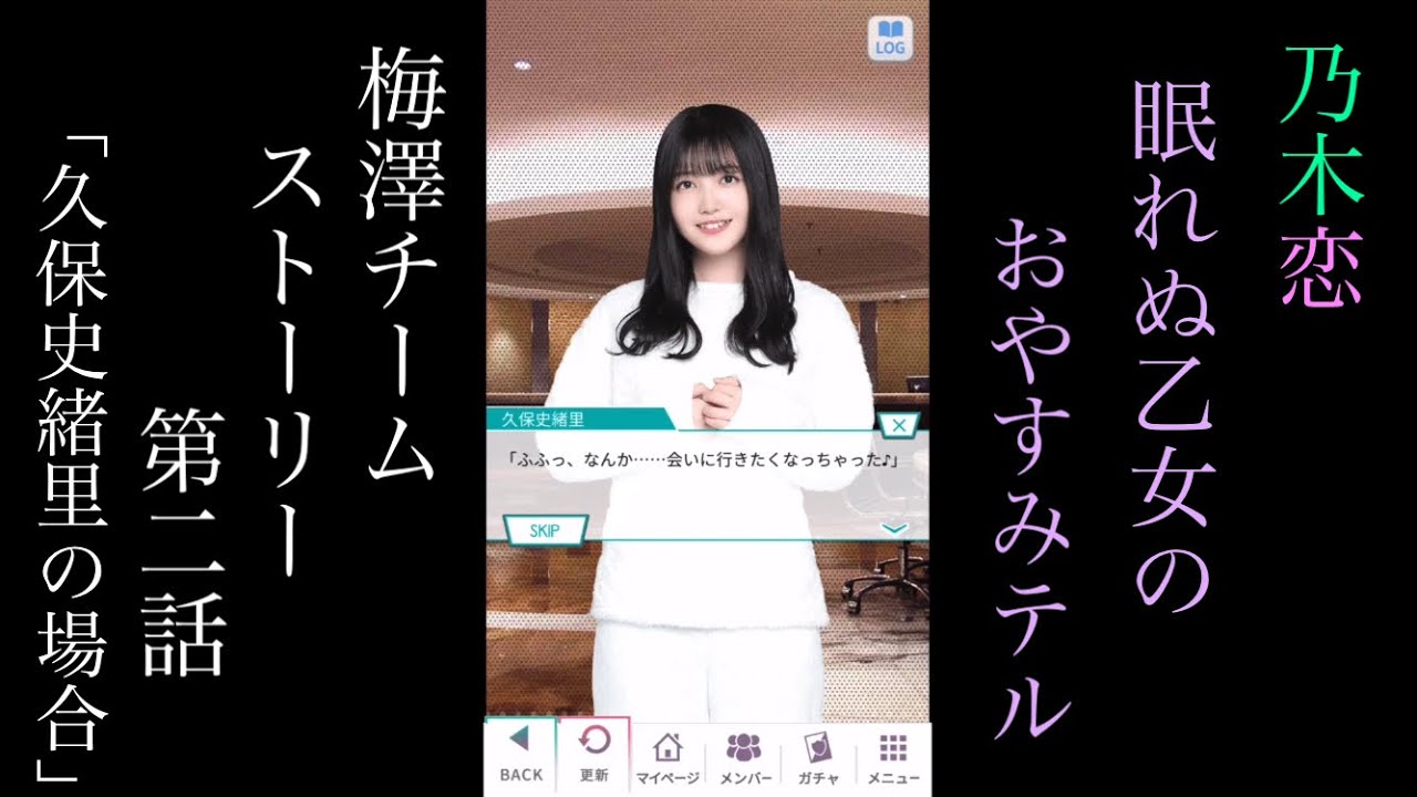 乃木恋にて現在開催中の新イベント「眠れぬ乙女のおやすみTEL」の梅澤チームのストーリー第二話「久保史緒里の場合」のプレイ動画になります。