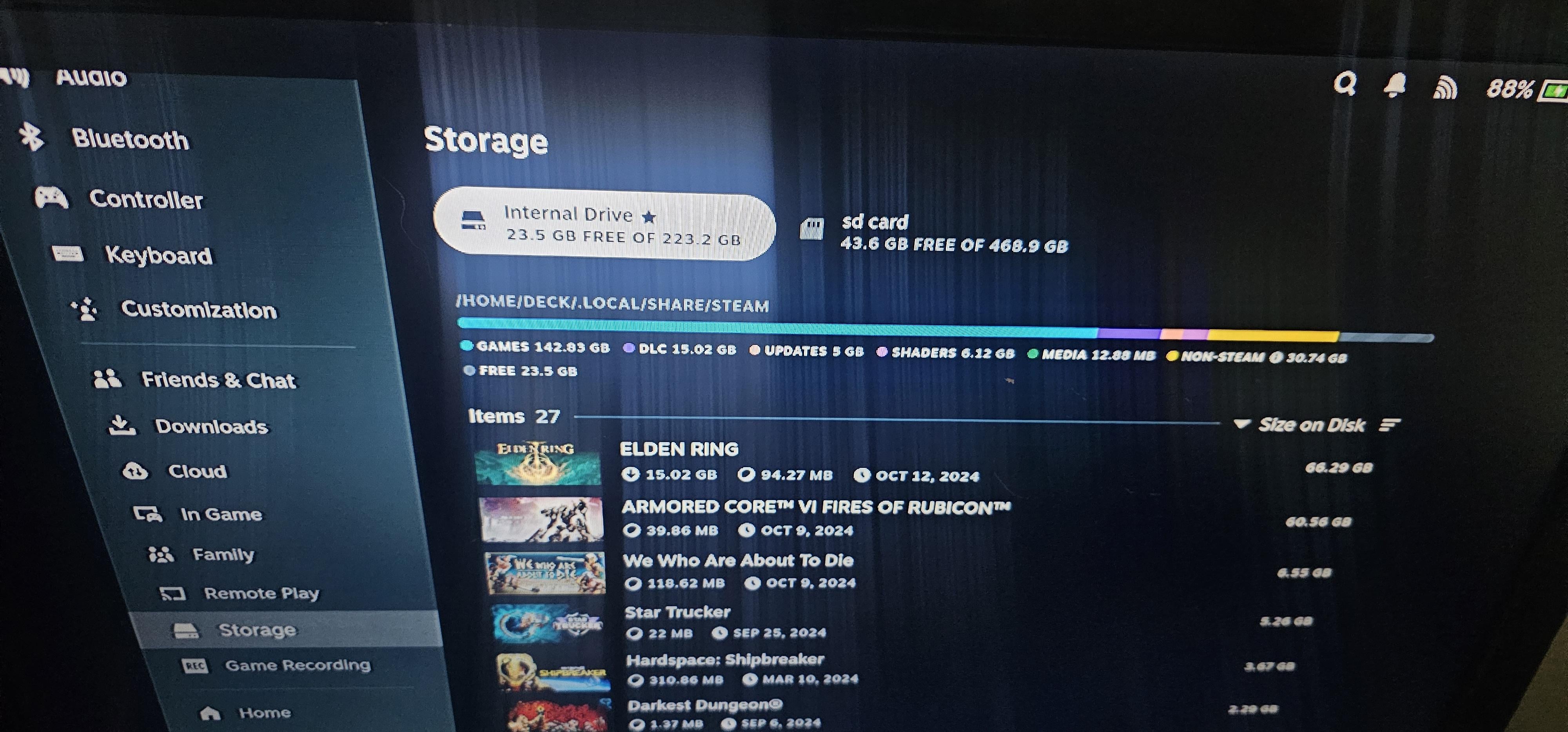 私のスチームデッキが512モジュールのストレージの半分を失った理由を知っている人はいますか