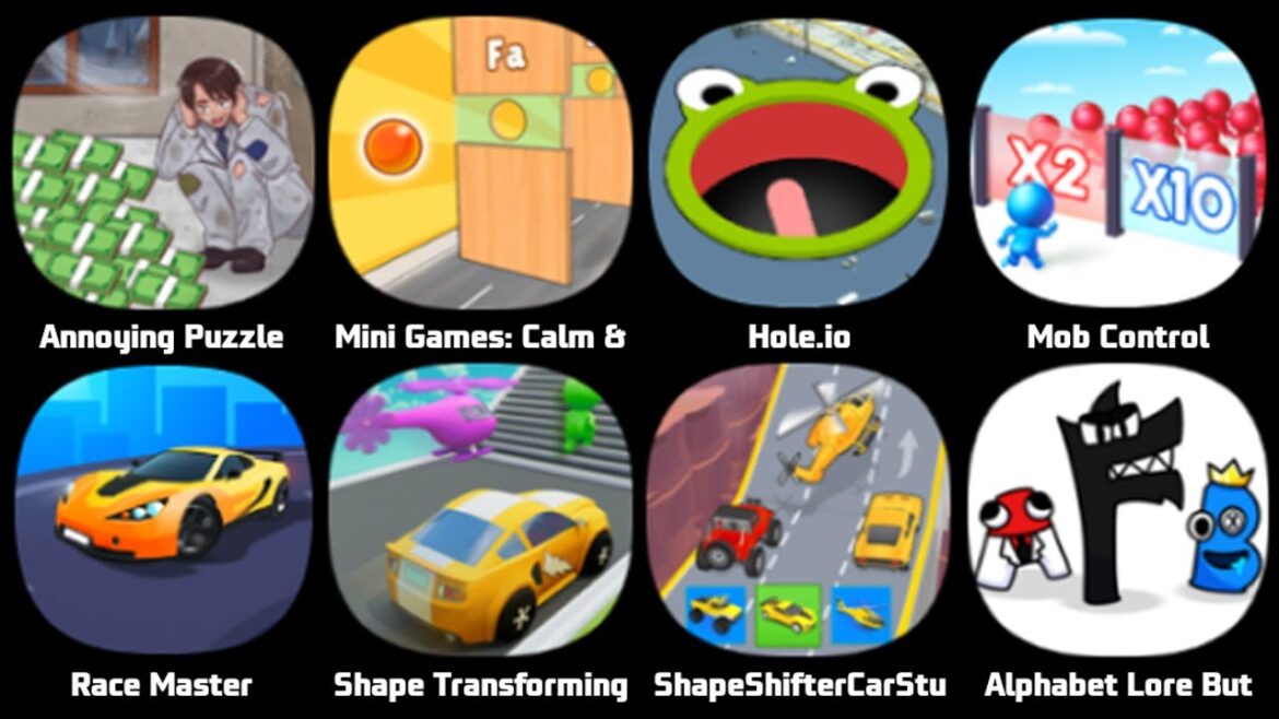 Annoying Puzzle Game, Mini Games, Calm Relax, Hole.io, Mob Control, Race Master, Shape Transforming, Alphabet Lore But Transformed