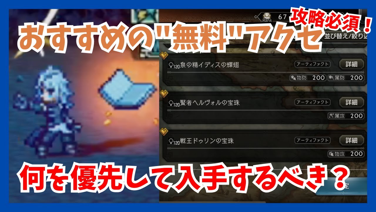 今回は攻略で非常によく使うおすすめの無料アクセを紹介していきます!