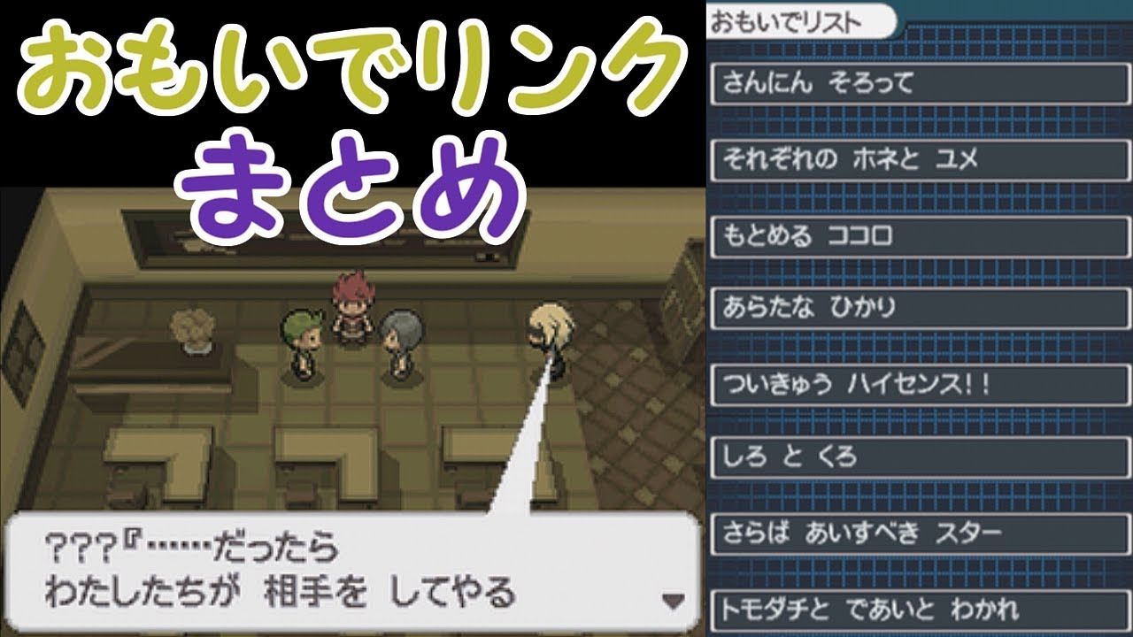 ポケモンBW2と前作のBWを連動させることによって発生する「おもいでリンク」イベント(リスト)のまとめです。1年以上前に個別の動画も出していましたが、初めて見て下さる方やまとめて見たい方もいらっしゃると感じ撮り直しました。