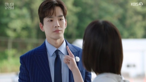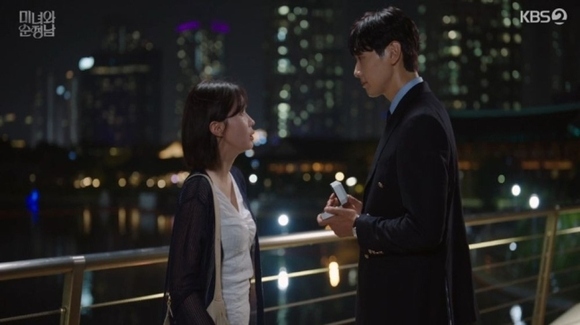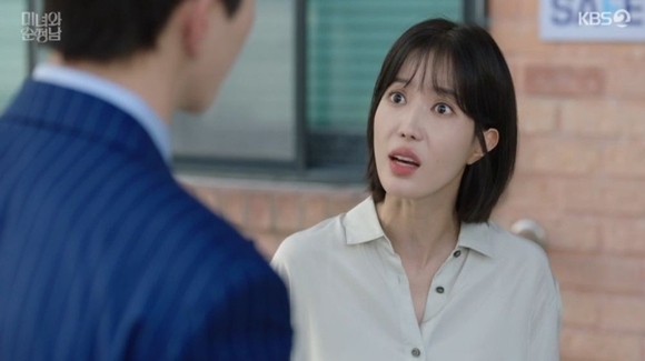 写真=KBS 2TV「美女と純情男」放送画面キャプチャー「美女と純情男」でイム・スヒャンが、非常識な執着を見せるコ・ユンに、ストーカーとして通報すると警告した。