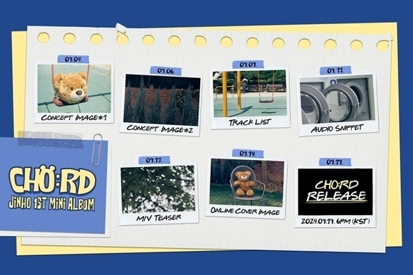 ジンホは9月3日、公式SNSを通じて1stミニアルバム「CHO:RD」のプロモーションスケジュールを公開した。コンセプトイメージの公開を皮切りにトラックリスト、オーディオスニペット映像、ミュージックビデオの予告映像、オンラインアルバムカバーイメージが順次公開される予定だ。