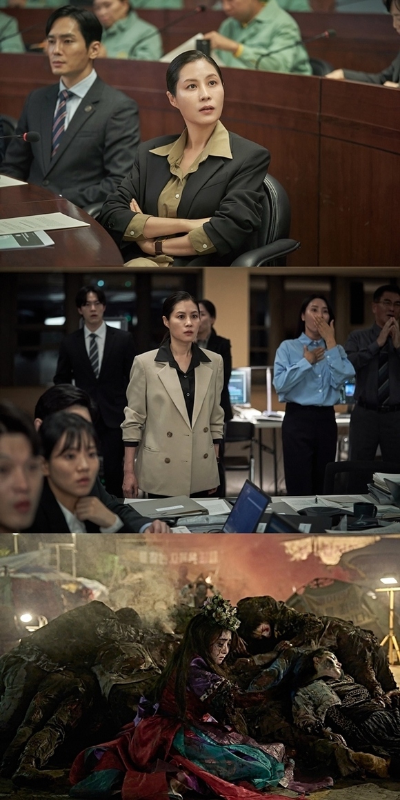 もう一人の復活者パク・ジョンジャのスチールカットも注目を集める。チョン・ジンスと同じく突然復活したパク・ジョンジャを新真理会が隠していたことに気づいた政府はキム・ジョンチル(イ・ドンヒ)議長に隠密に接近する。大統領室の政務首席イ・スギョン(ムン・ソリ)は矢じりの無差別なテロで混乱した世の中でパク・ジョンジャを利用して新真理会を通じた新しい教理を提示し、社会の規制と秩序を取り戻そうとする。