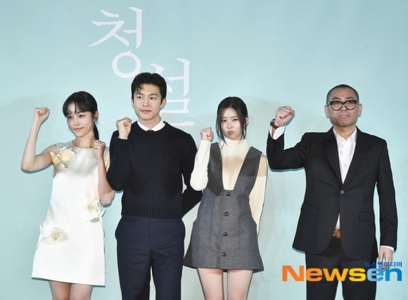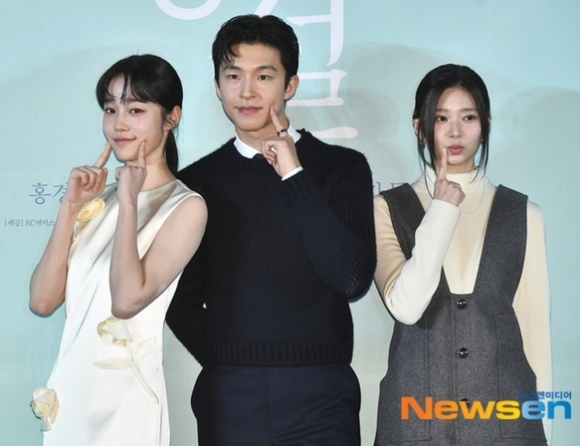 18日午前、ソウル城東(ソンドン)区メガボックス聖水(ソンス)店にて、映画「聴説」の制作報告会が行われ、ホン・ギョン、ノ・ユンソ、IZ*ONE出身のキム・ミンジュらが出席した。