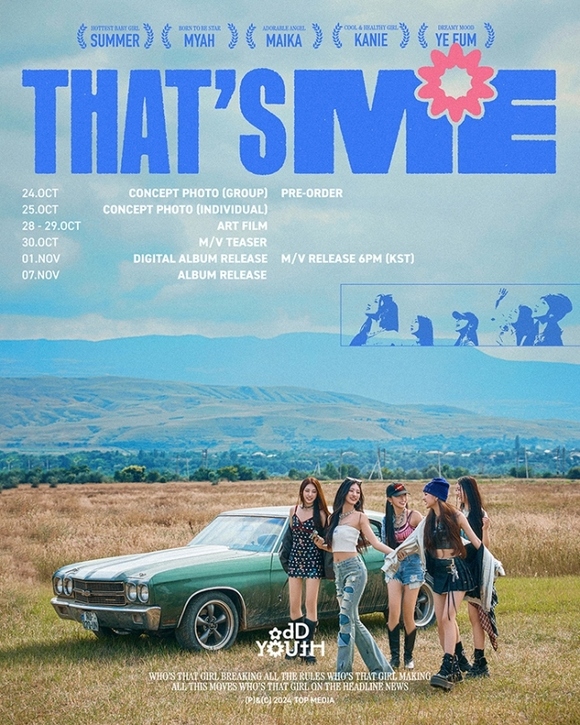 今回のムードポスターの中には、彼女たちのプロモーションスケジュールが盛り込まれ、期待を高める。24日、コンセプトフォトを皮切りに28日にアートフィルムを順を追って公開し、11月1日、ついにデビューする。デビュー日には、デビュー曲「THAT’S ME」の音源とミュージックビデオが公開される。