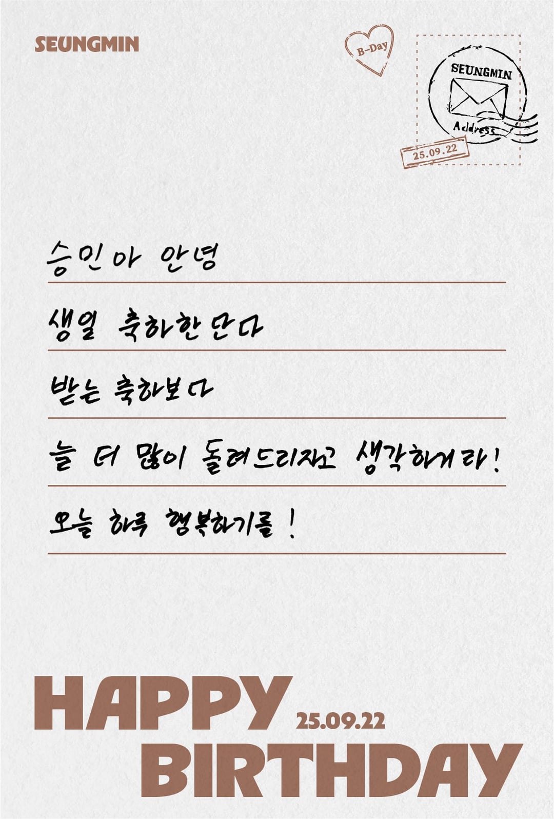 Stray Kids 2025-09-21 250922お誕生日おめでとう、スンミン! 250922お誕生日おめでとう、スンミン! Stray Kids Write A Commentコメントを投稿するにはログインしてください。