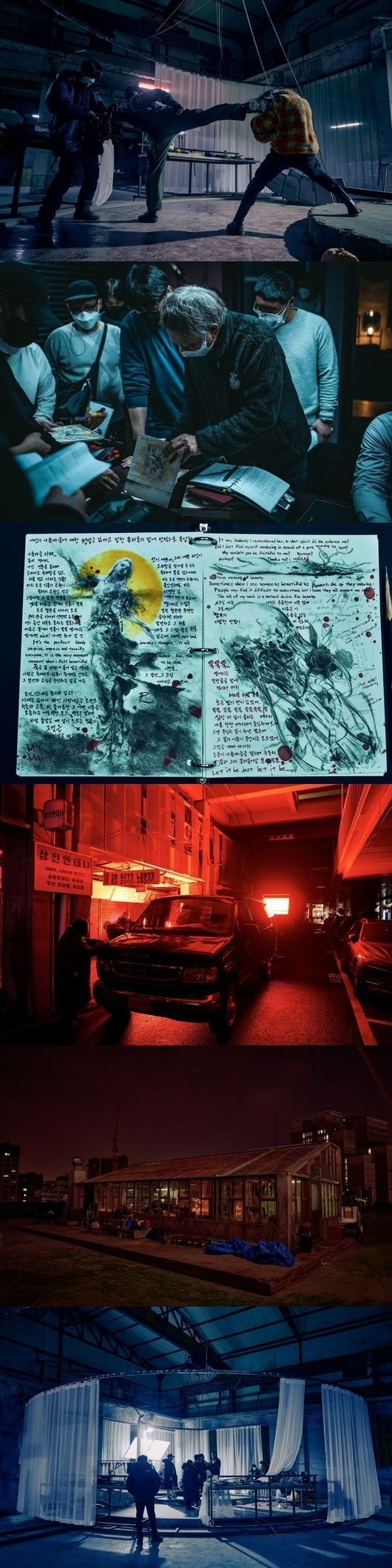 作品の完成度を高める小物と撮影現場も目を引く。「死体アート」殺人事件で、韓国を騒がせた連続殺人鬼ジンソプのノートはハイクオリティなスケッチとディテールで感嘆を誘い、劇中人物への関心を高めた。ドンスの家、ジンソプのアトリエなどのセットも陰惨でユニークな雰囲気を与え、「コネクト」の世界観の下で繰り広げられるストーリーへの関心を高めた。