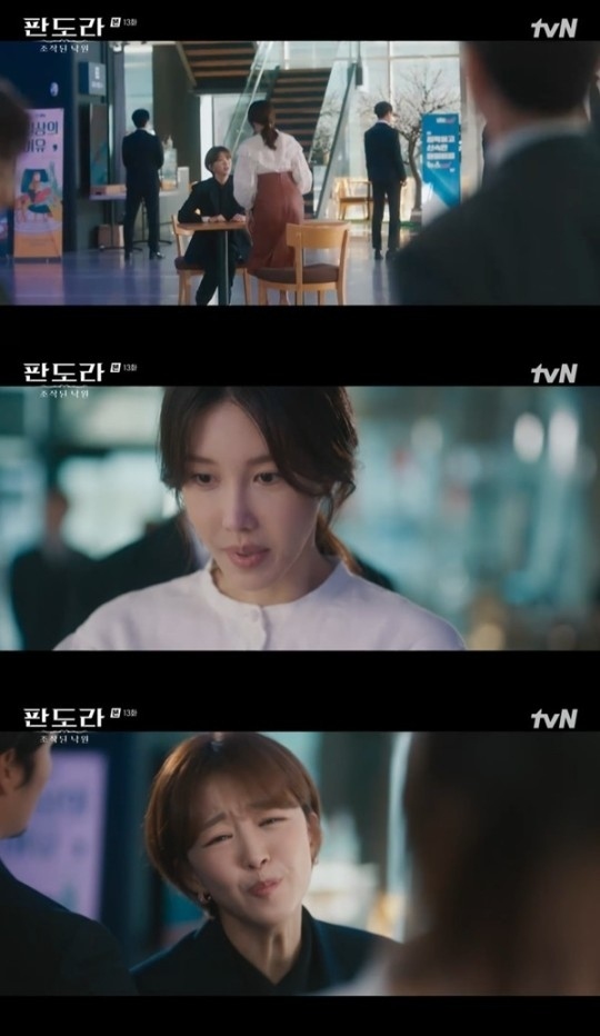 韓国で4月22日に放送されたtvN土日ドラマ「パンドラ 偽りの楽園」第13話(脚本:ヒョン・ジミン、演出:チェ・ヨンフン)で、コ・ヘス(チャン・ヒジン)はピョ・ジェヒョン(イ・サンユン)がホン・テラの記憶を削除したと確信した。