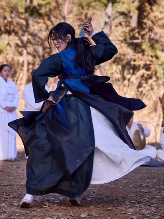 スニーカーを履いて“クッ(シャーマニズムの儀式)”をする、いわゆる“MZ巫女”として話題になった中、キム・ゴウンは「衣装監督と協議しました。それがこのように話題になるとは思いませんでした。クッをする時にはジャンプなど躍動感のある動きがあるため、そのような選択をしました」と話した。