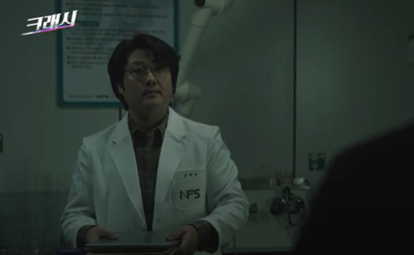 問題の国立科学捜査研究所の分析官であるヒョンミンは、第4話の酔っぱらいの轢過事件の時に初めて登場した。当時、轢過車両が2台であることを知らせて愛嬌を振りまくオ・ヒョンギョン(ムン・ヒ)に急な好意を示す、例の“工大男風の間抜け”を演じていた。