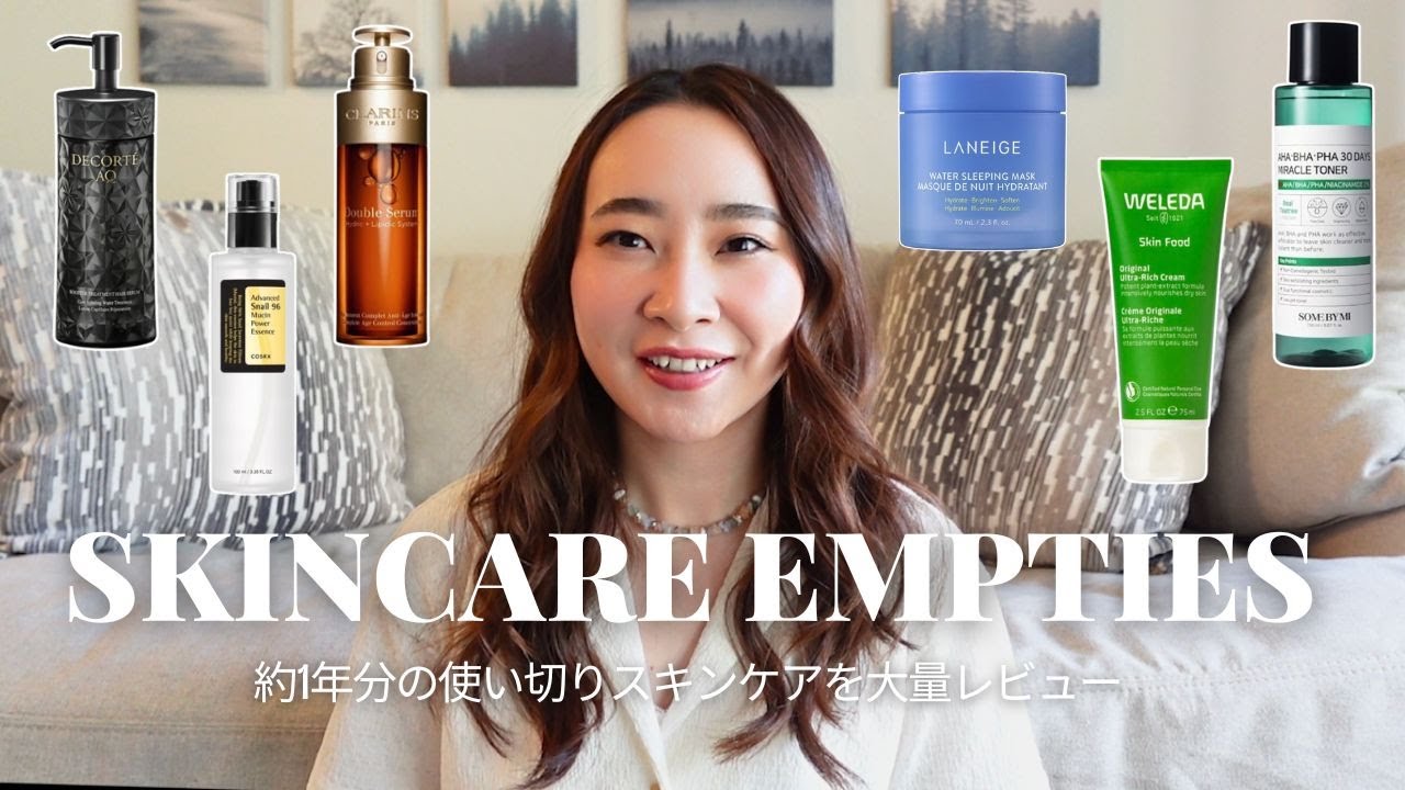 みなさんこんにちは!今回は1年近く溜め込んでいたスキンケアの使い切りを大量にご紹介します✨是非参考にしていただければ嬉しいです😊