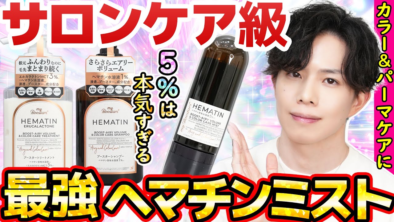 カラーリングやブリーチによる化学物質除去の為にヘマチンがよきときき、プラザでヘマチン5%!水の次にヘマチン!というこのミストを見つけた時には半信半疑で買いましたが、使い心地サイコー!今回のかずのすけさんの動画でリピも確定です👍🏻