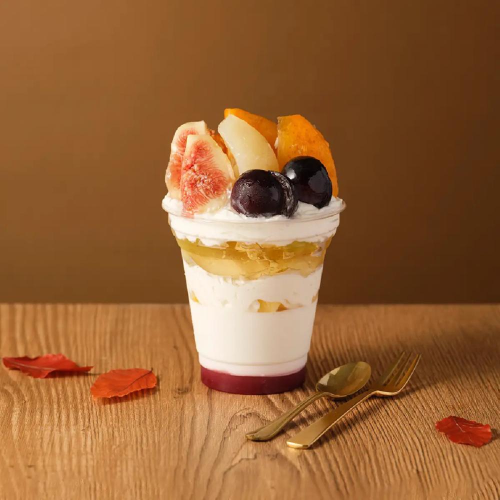 9月5日から10月31日の金・土・日曜日・祝日に販売される、秋が旬のフルーツが贅沢に盛られたパフェ。柿、無花果、巨峰、洋梨、ぶどうゼリー、パンナコッタが入っていて、ひと口食べ進めるごとにいろいろ味を楽しめます。