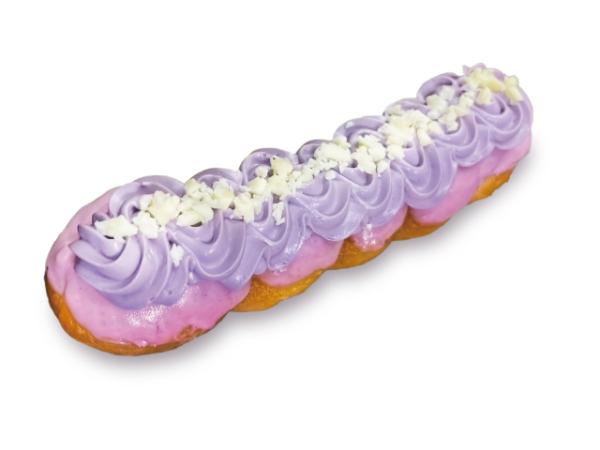 さらになめらかなラベンダークリームを絞ってホワイトチョコをトッピングした、やさしい甘さと華やかな香りが広がる、見た目も華やかなドーナツですよ。