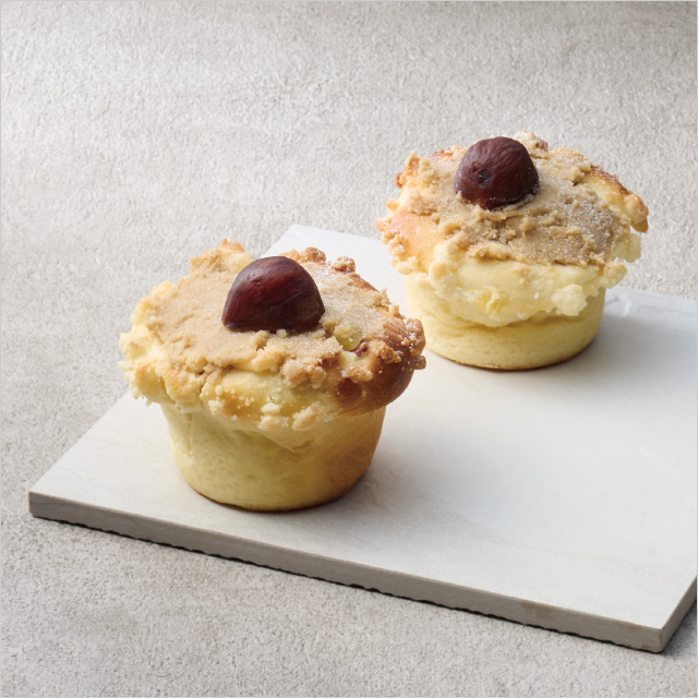 さつまいもカスタードが入ったパンに大粒の栗をトッピングした、まさに秋の味覚の結晶。