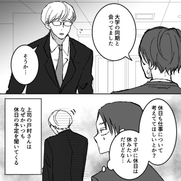 理玖は上司にいつも休日の予定を聞かれます。