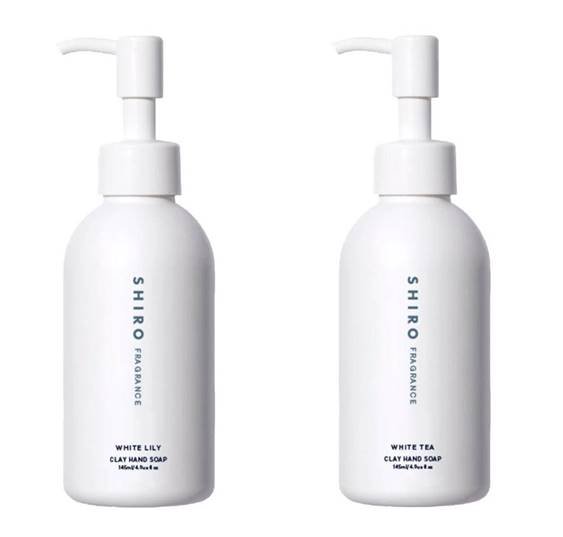 (左から)「ホワイトリリー」、「ホワイトティー」。SHIROの「クレイハンドソープ」は天然由来の成分が手肌を清潔に保ちながら、心地よい香りを楽しめるスクラブハンドソープ。鹿児島県のシラス台地の火山灰(クレイ※1)の細かなスクラブが、手肌の汚れや皮脂を優しくオフ。保湿成分のアロエ※2配合で、しっとりした潤いを感じられる洗い上がりです。